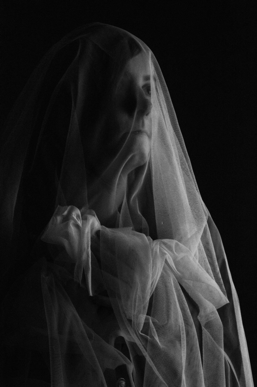 A photographic study in concealment and light, using fabric and natural shadow to examine mood, identity, and form.